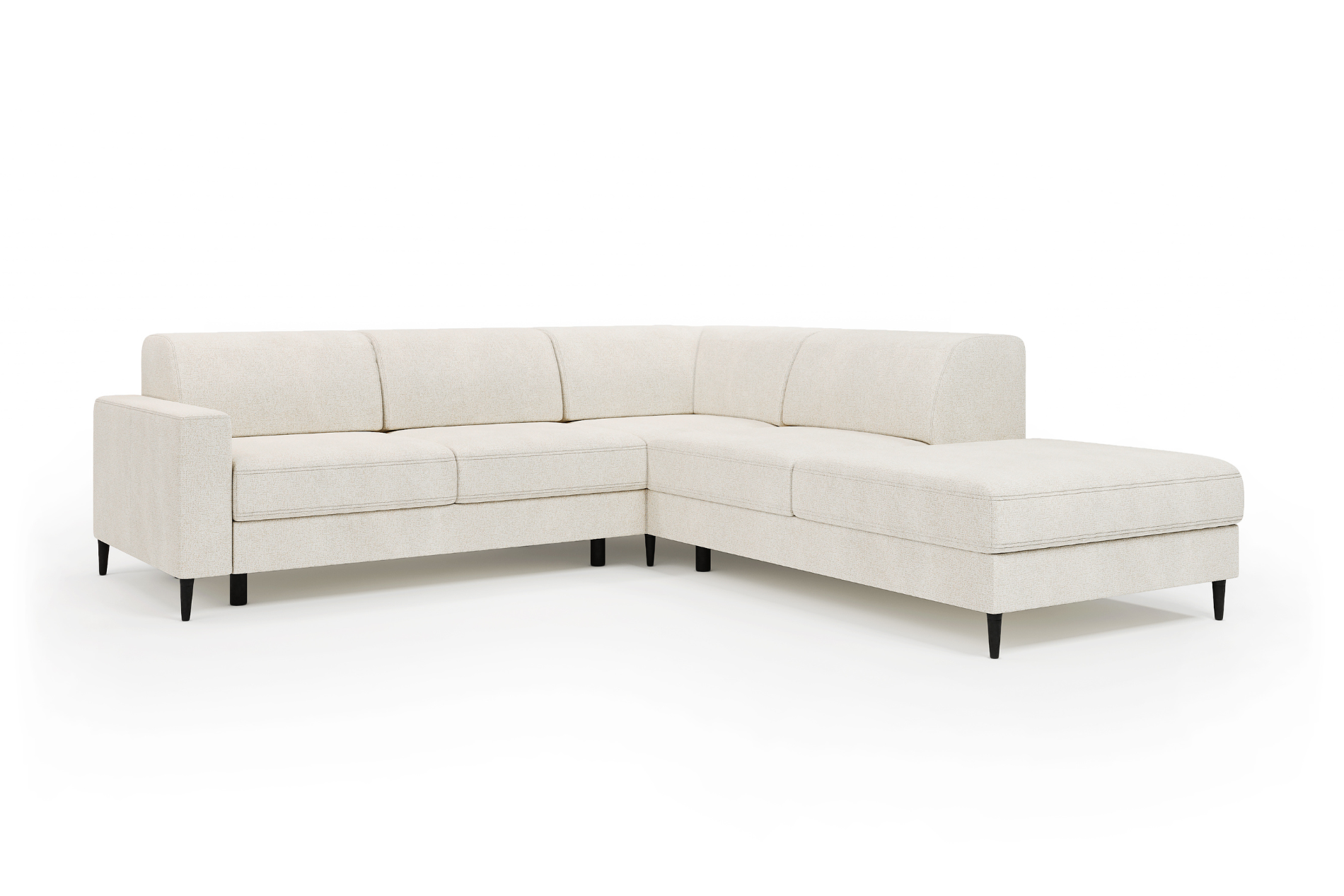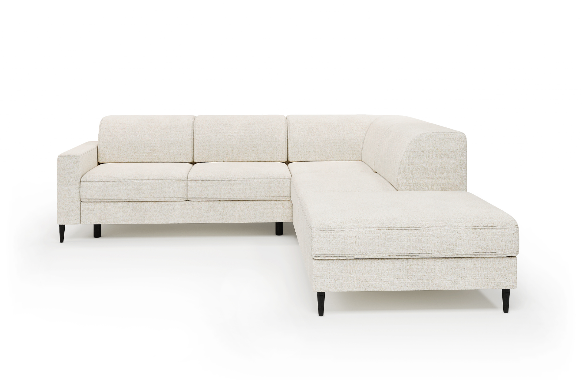 Mebel został zaprojektowany jako modułowy, co daje możliwość dopasowania układu do indywidualnych potrzeb i wielkości pomieszczenia. Smukłe, wysokie czarne nóżki (12 cm) nadają konstrukcji lekkości i ułatwiają utrzymanie czystości pod meblem.